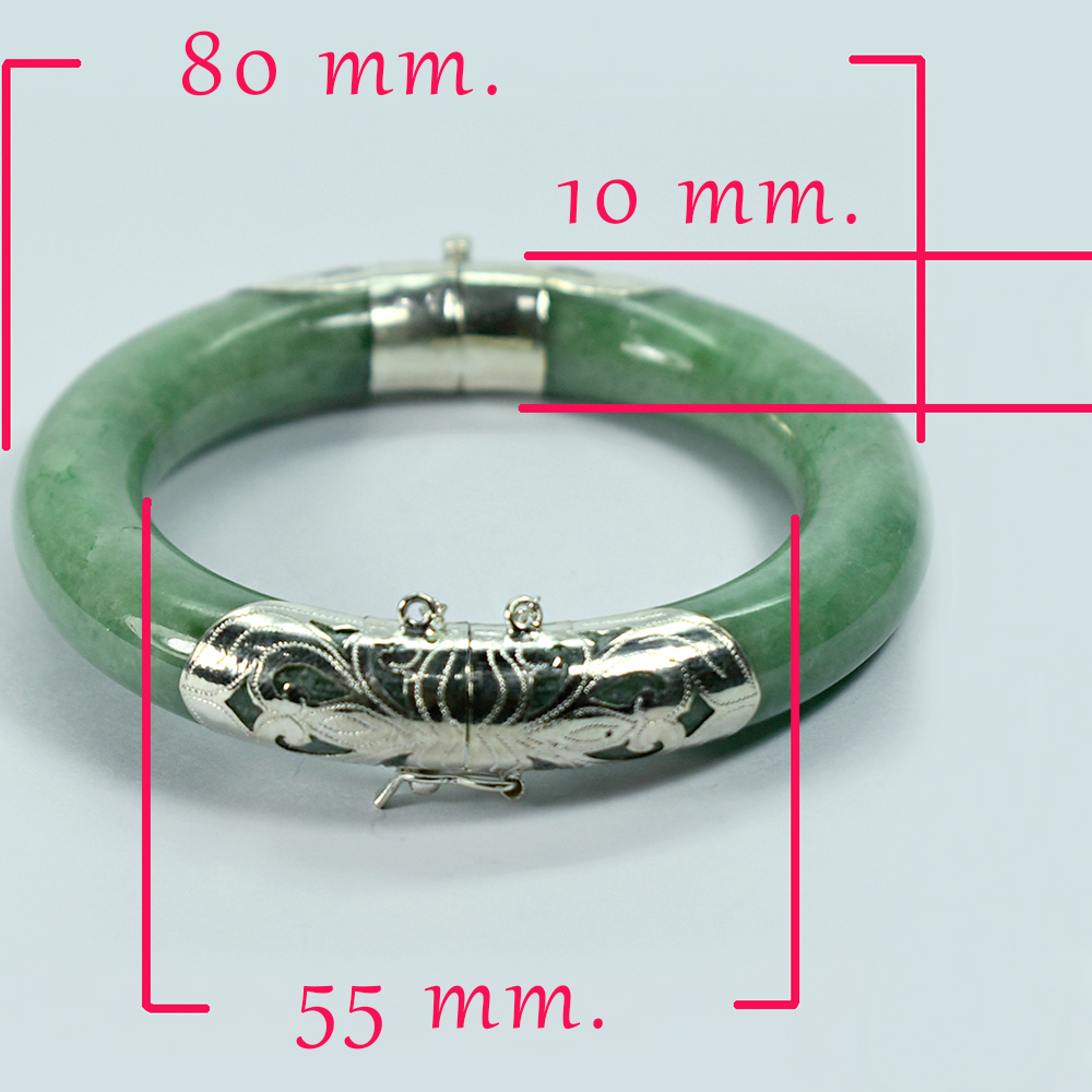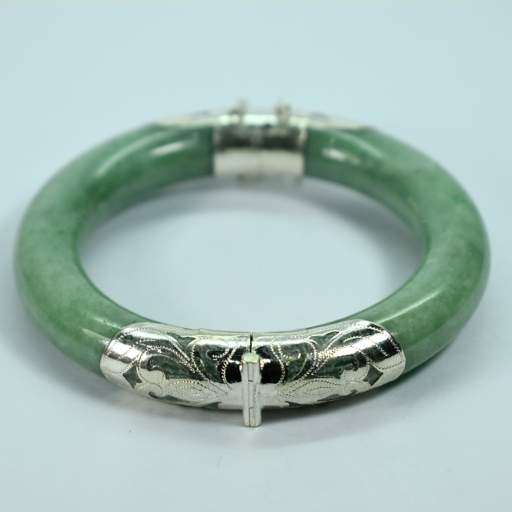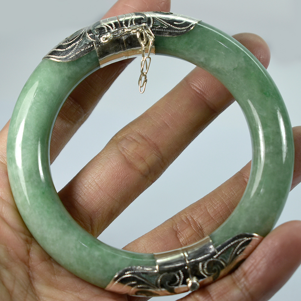 384.98 Ct. Natural Genuine Burmese Jade Bangle Diameter With Silver Jewelry