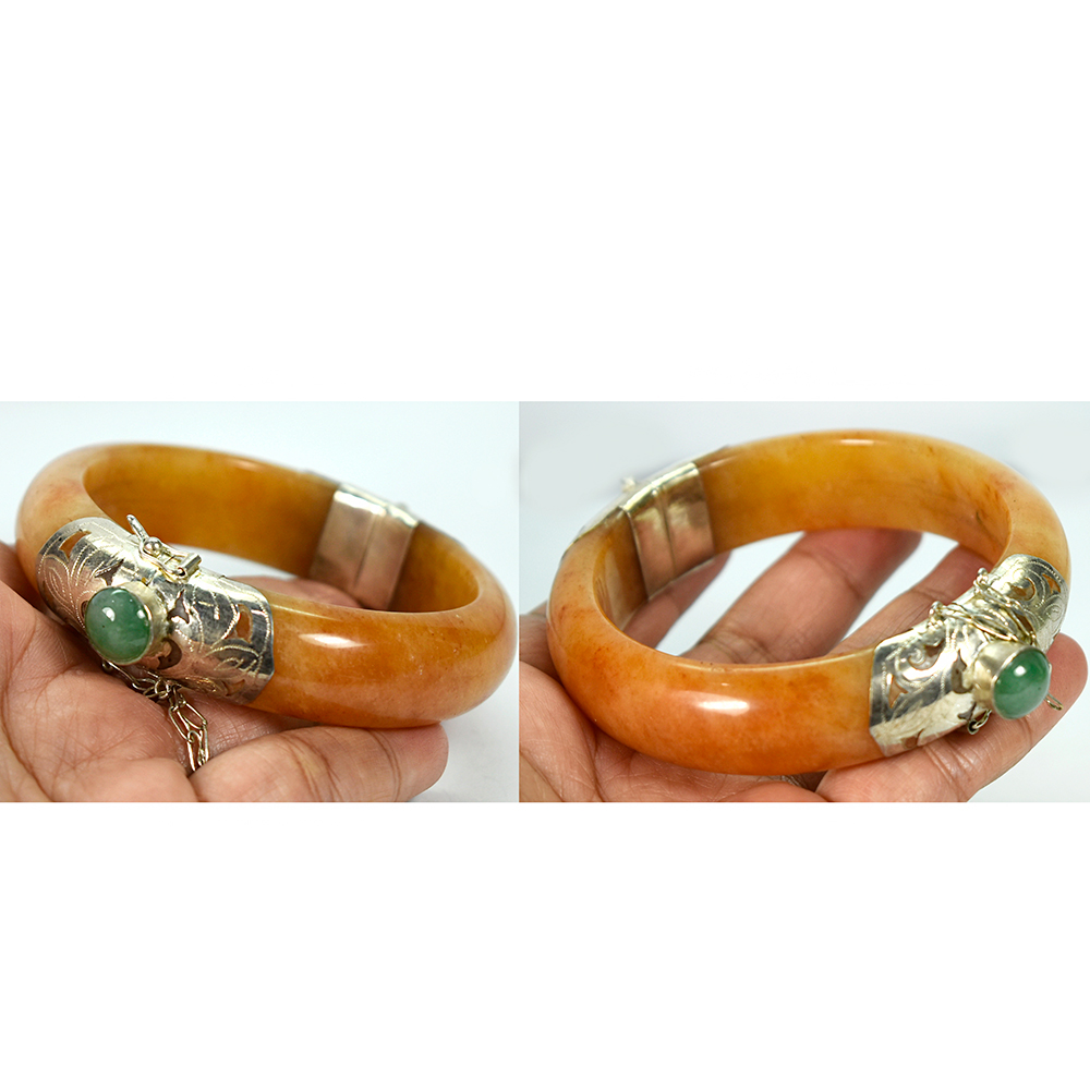Natural Genuine Burmese Jade 424.82 Ct. Bangle Diameter 64MM With Silver Jewelry