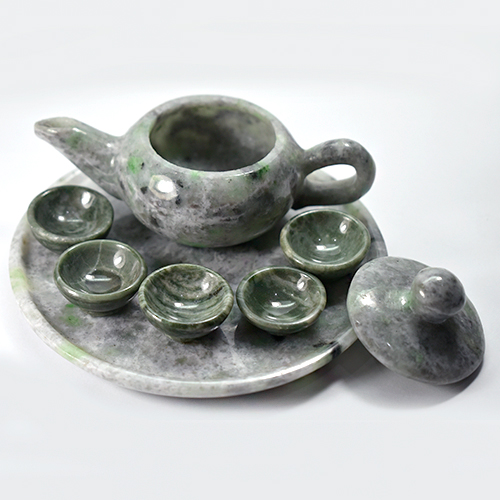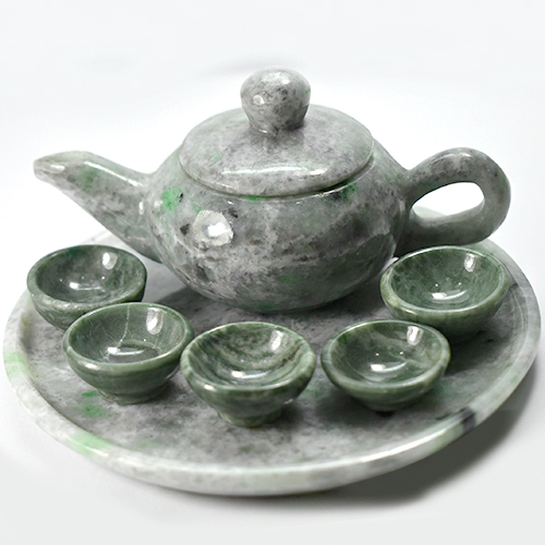 Natural Genuine Burmese Jade 2175.00 Ct. Kettle Tea Drink set Carving Shape