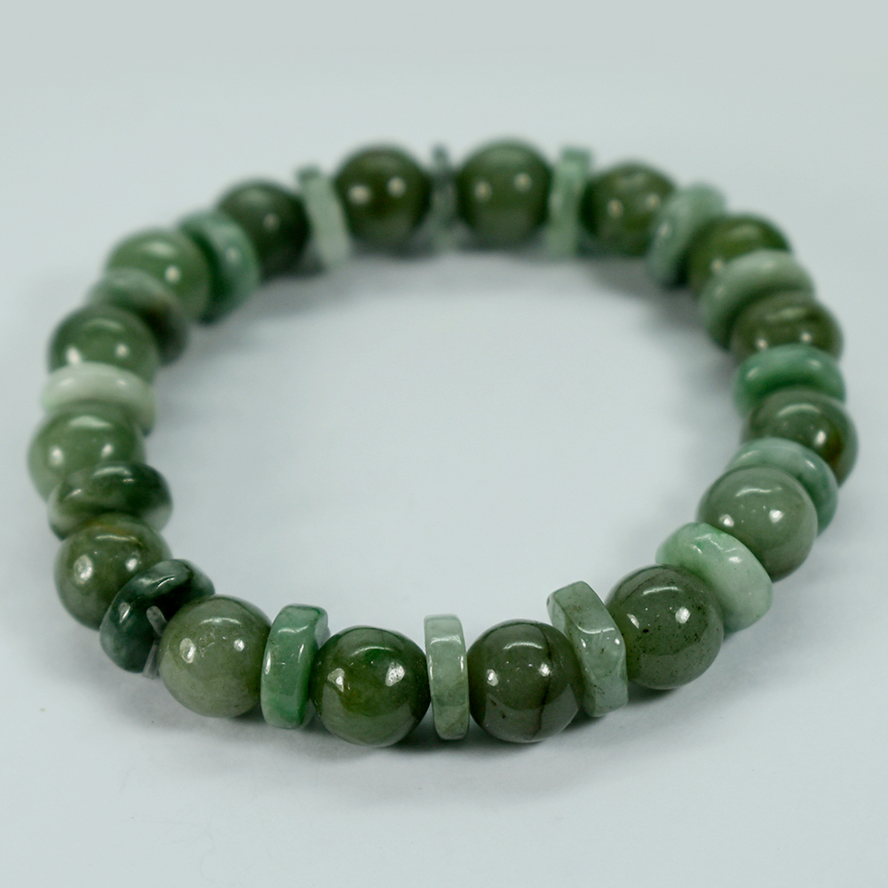 Green Jade Beads Flexibility Bracelet Length 7 Inch. 167.18 Ct. Natural Gemstone