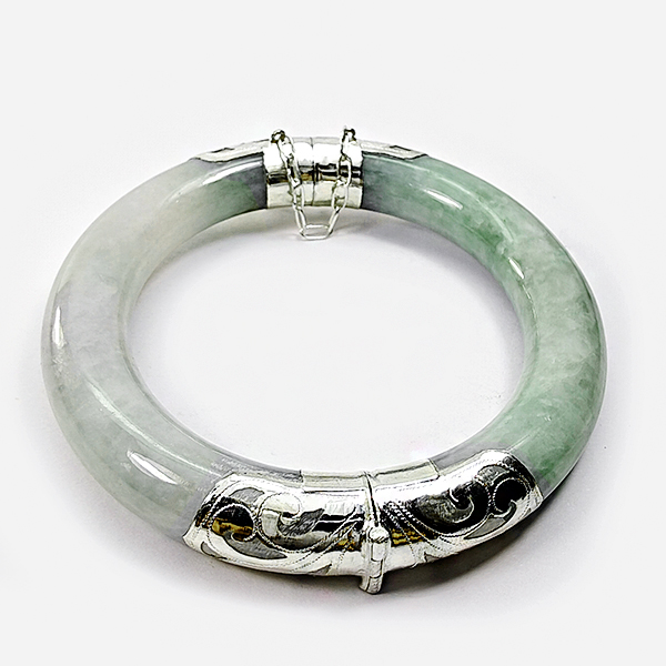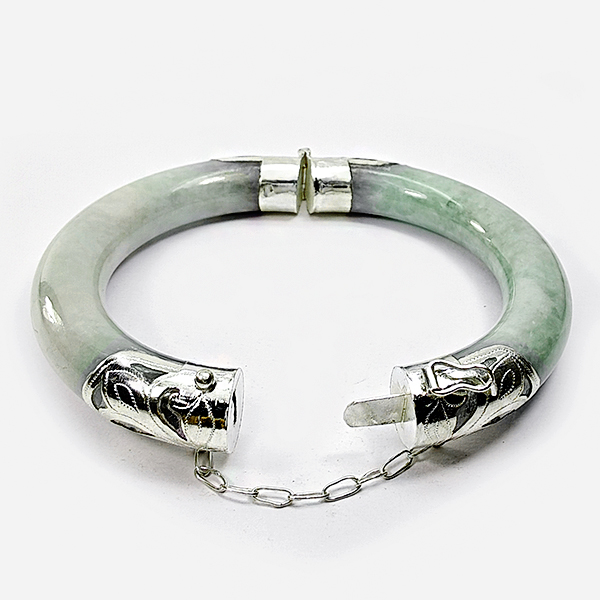400.59 Ct. Beautiful Natural Green Jade Bangle with Real Silver
