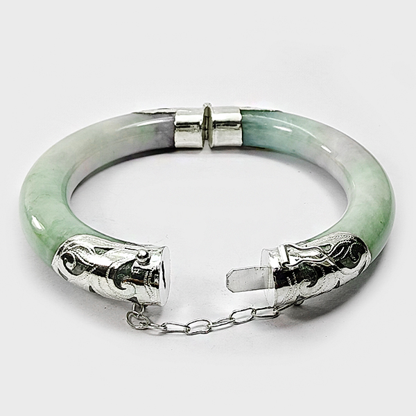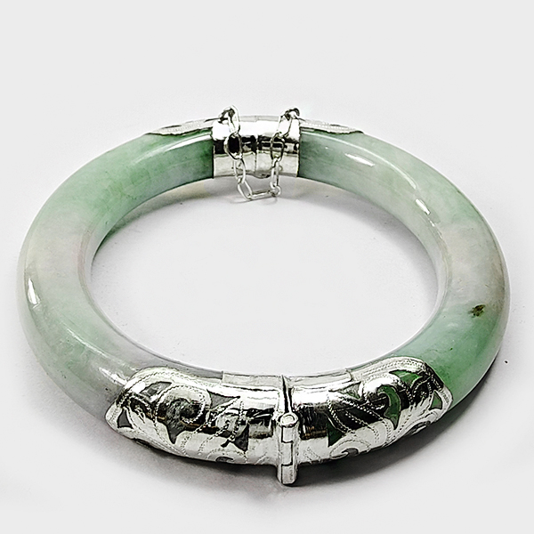 354.90 Ct. Beautiful Natural Green Jade Bangle with Real Silver