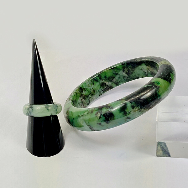 Natural Genuine Burmese Jade 350 Ct Bangle and Ring Size 7 Set 3 pcs Gemstones