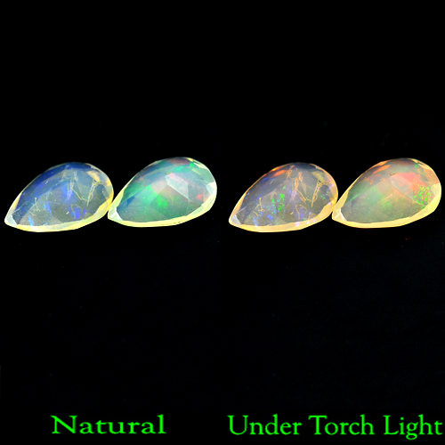 0.67 Ct. Pair Pear Shape Natural Gem Multi-Color (Play Of Colour) Opal