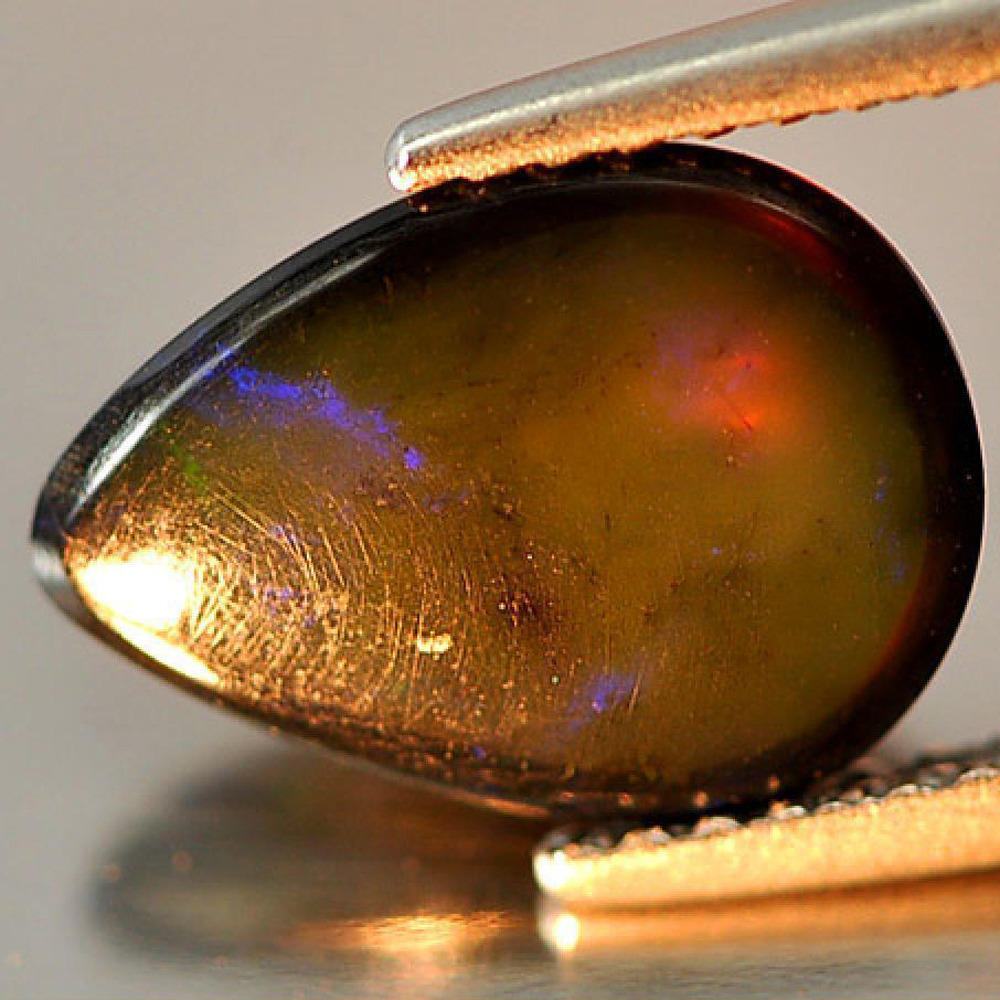 Play Of Color Rainbow Fire Red Black Opal 1.45 Ct. Pear Cabochon Natural Gem
