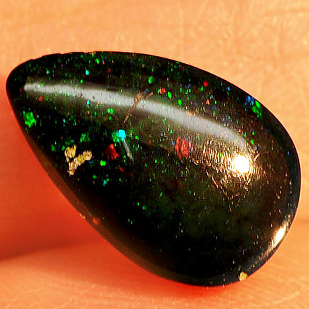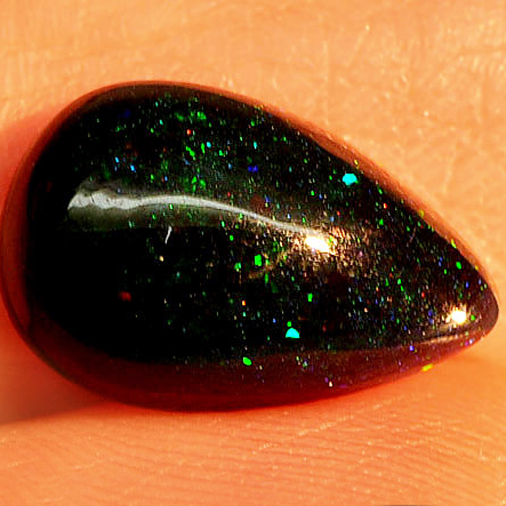 Play Of Color Rainbow Fire Red Black Opal 2.17 Ct. Pear Cabochon Shape Natural