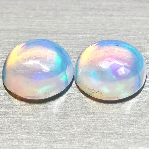 Natural Multi Color Opal 1.67 Ct. 2 Pcs Round Cabochon Shape 7 Mm Gemstones