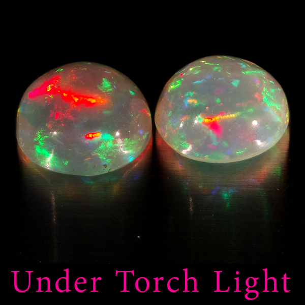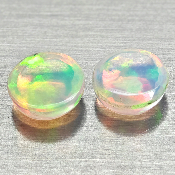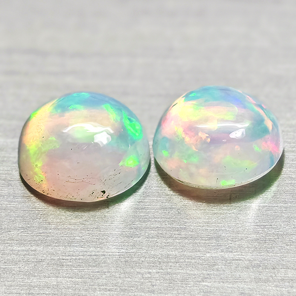Natural Multi Color Opal 1.78 Ct. 2 Pcs Round Cabochon Shape 6.9 Mm Gemstones
