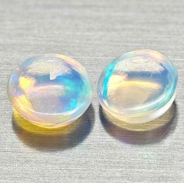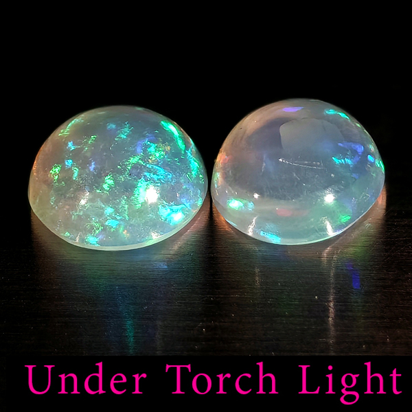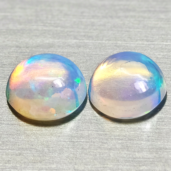 Natural Multi Color Opal 1.42 Ct. 2 Pcs Round Cabochon Shape 6.6 Mm Gemstones