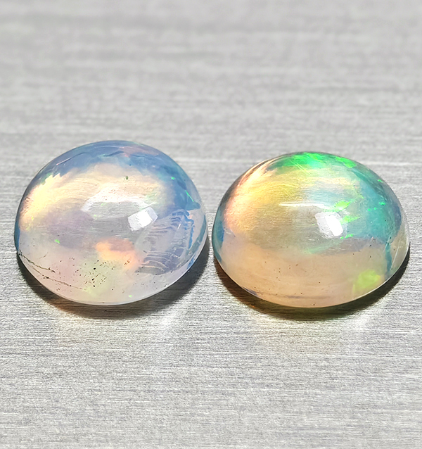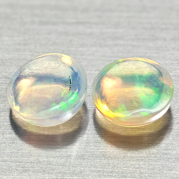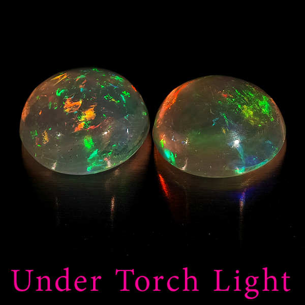 Natural Multi Color Opal 1.47 Ct. 2 Pcs Round Cabochon Shape 6.8 Mm Gemstones