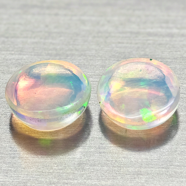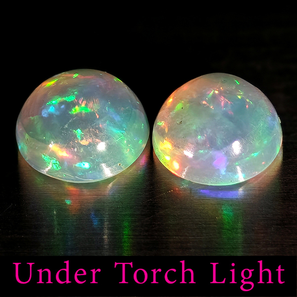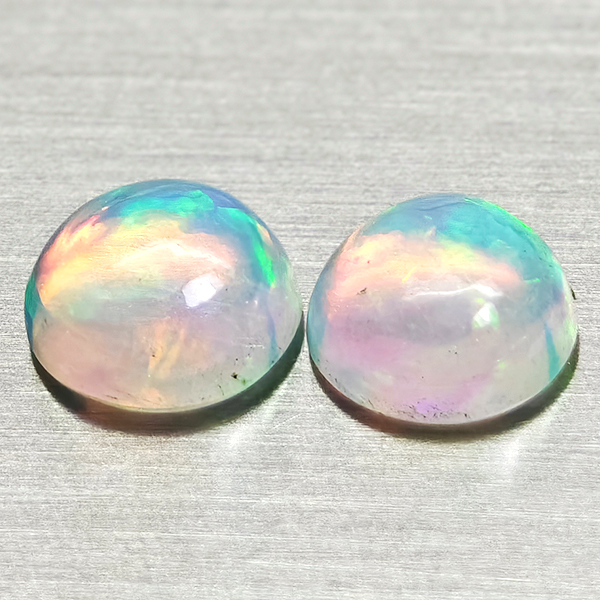 Natural Multi Color Opal 1.71 Ct. 2 Pcs Round Cabochon Shape 6.9 Mm Gemstones