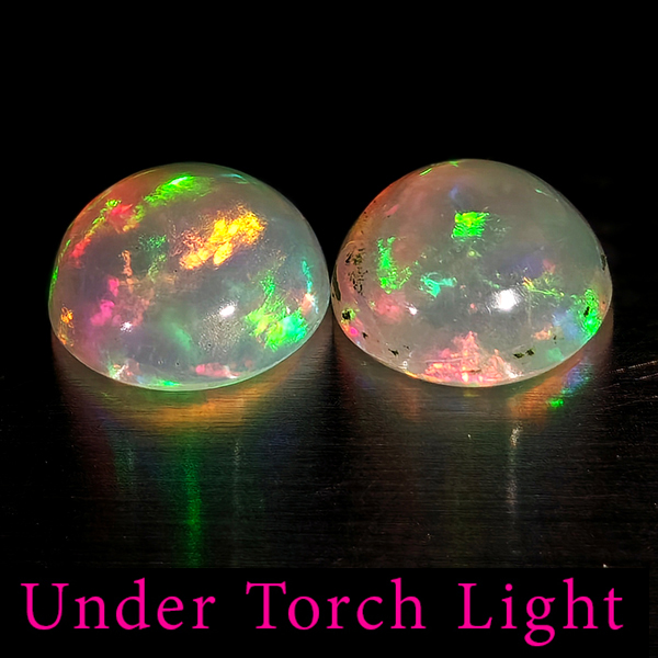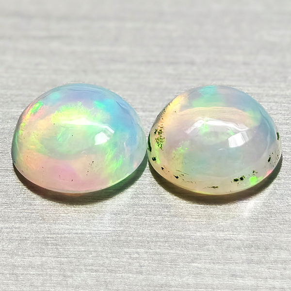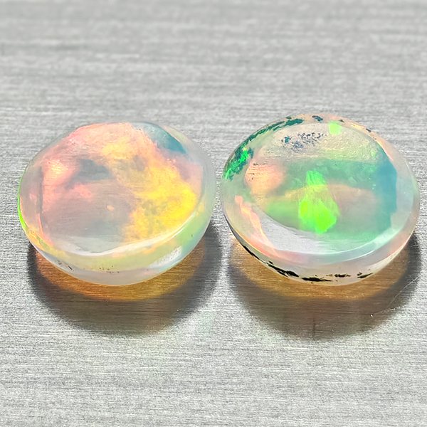 Natural Multi Color Opal 1.40 Ct. 2 Pcs Round Cabochon Shape 7 Mm Gemstones