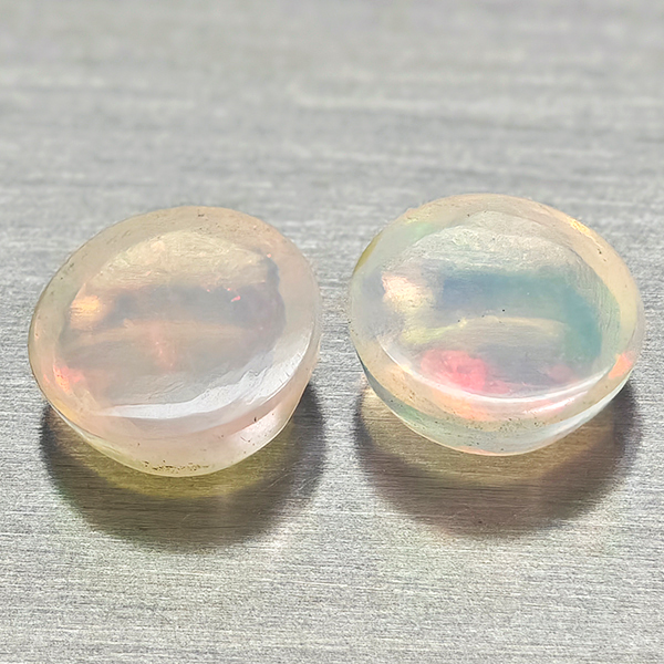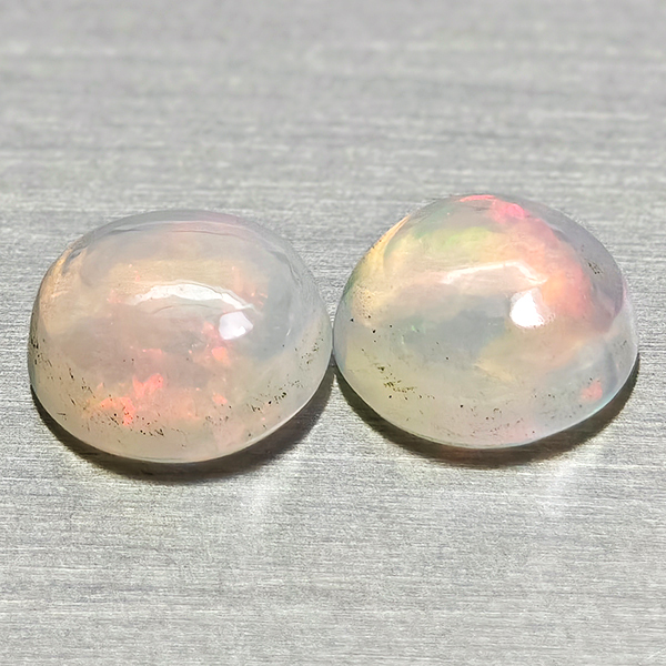 Natural Multi Color Opal 1.66 Ct. 2 Pcs Round Cabochon Shape 6.9 Mm Gemstones
