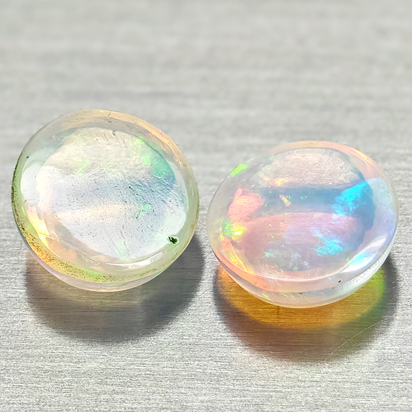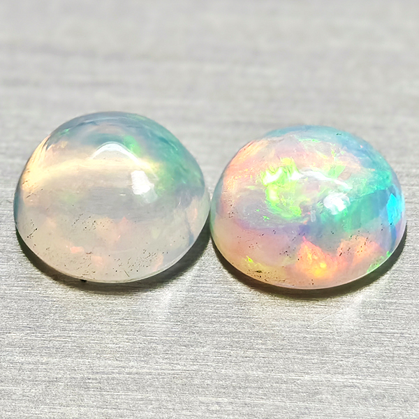 Natural Multi Color Opal 1.62 Ct. 2 Pcs Round Cabochon Shape 7 Mm Gemstones