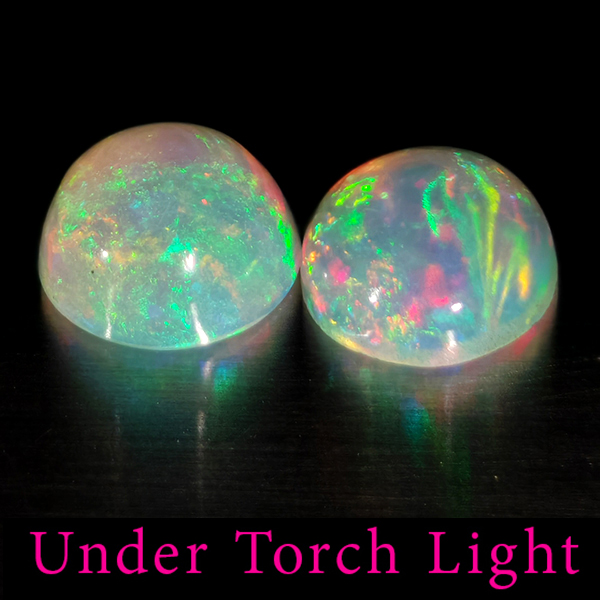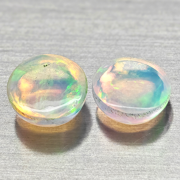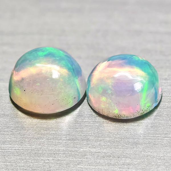 Natural Multi Color Opal 1.94 Ct. 2 Pcs Round Cabochon Shape 7.1 Mm Gemstones