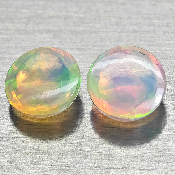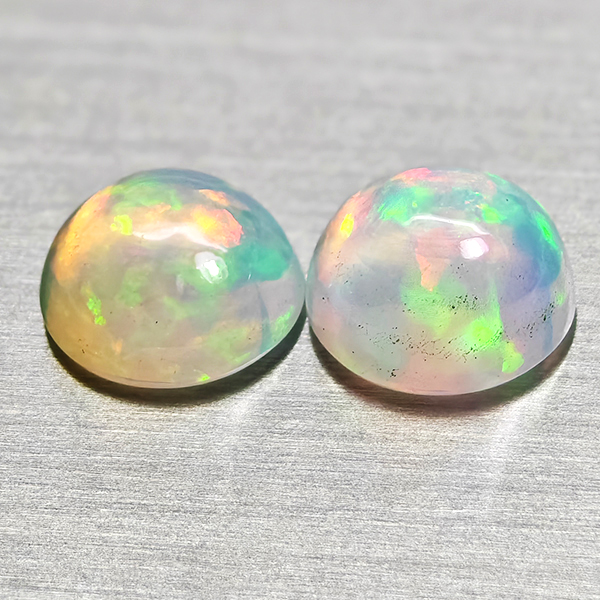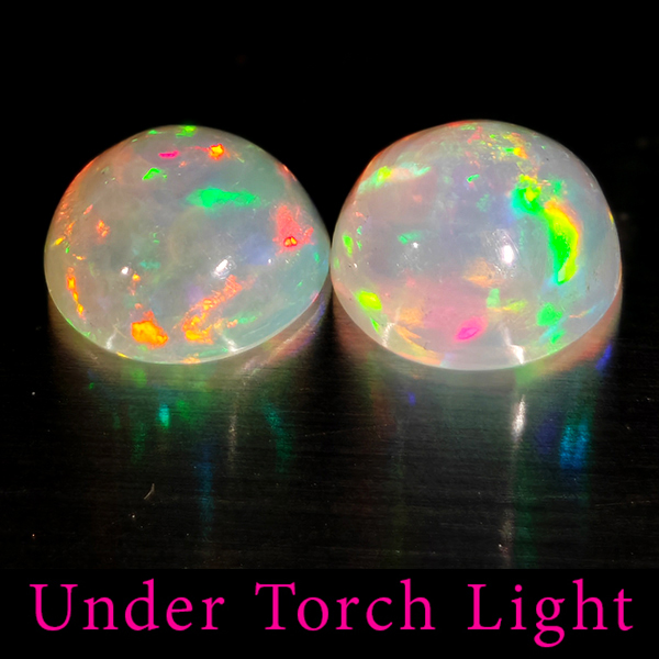 Natural Multi Color Opal 1.80 Ct. 2 Pcs Round Cabochon Shape 7.1 Mm Gemstones