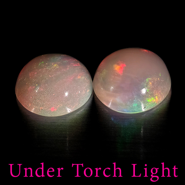 Natural Multi Color Opal 1.51 Ct. 2 Pcs Round Cabochon Shape 7 Mm Gemstones