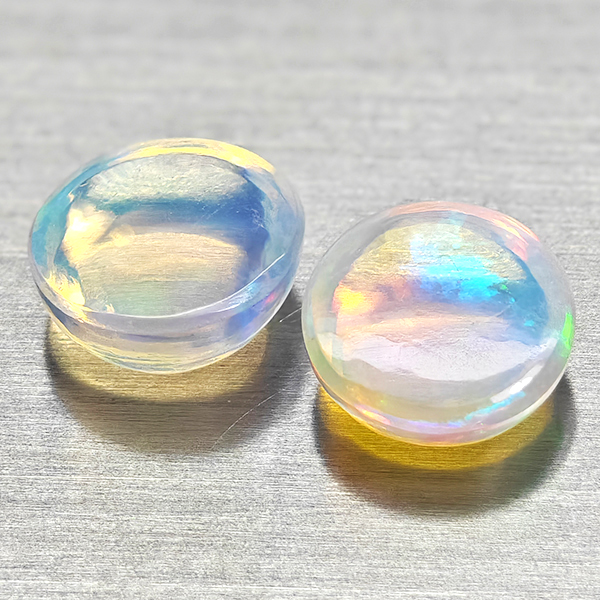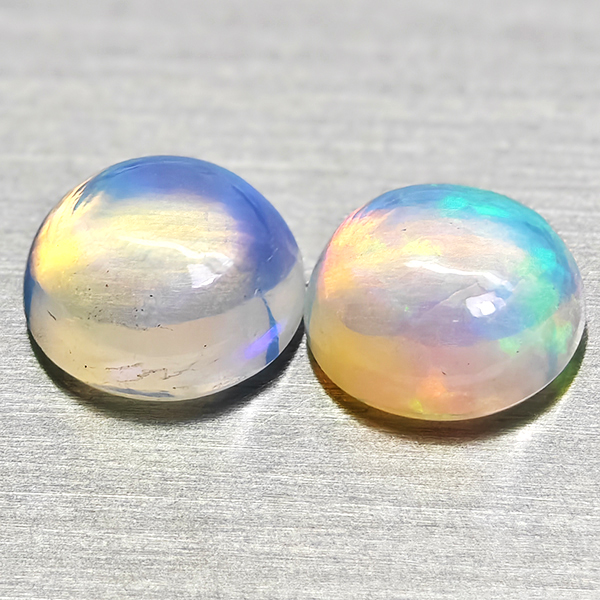 Natural Multi Color Opal 1.74 Ct. 2 Pcs Round Cabochon Shape 7 Mm Gemstones