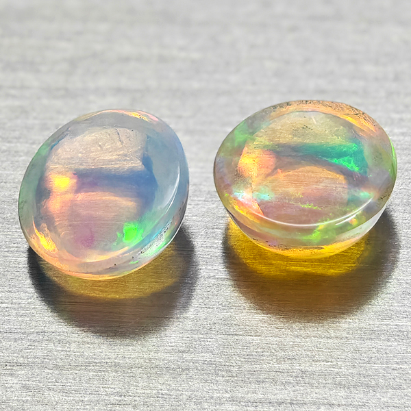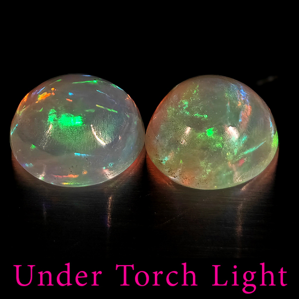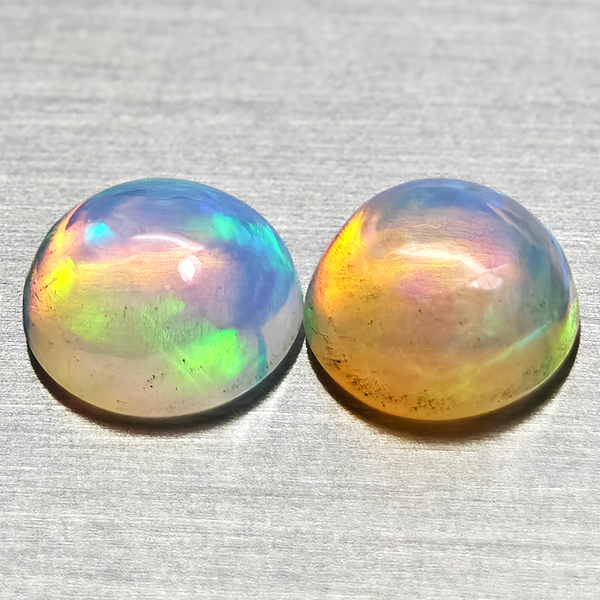 Natural Multi Color Opal 1.77 Ct. 2 Pcs Round Cabochon Shape 7.1 Mm Gemstones