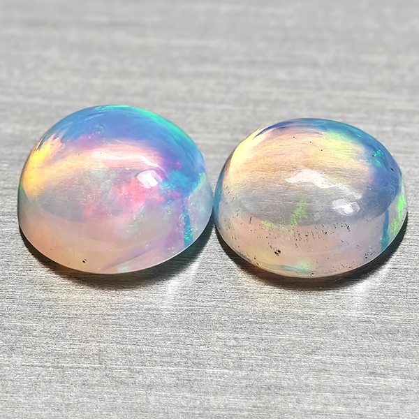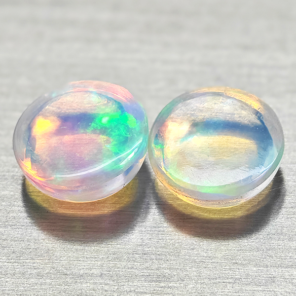 Natural Multi Color Opal 1.66 Ct. 2 Pcs Round Cabochon Shape 7 Mm Gemstones