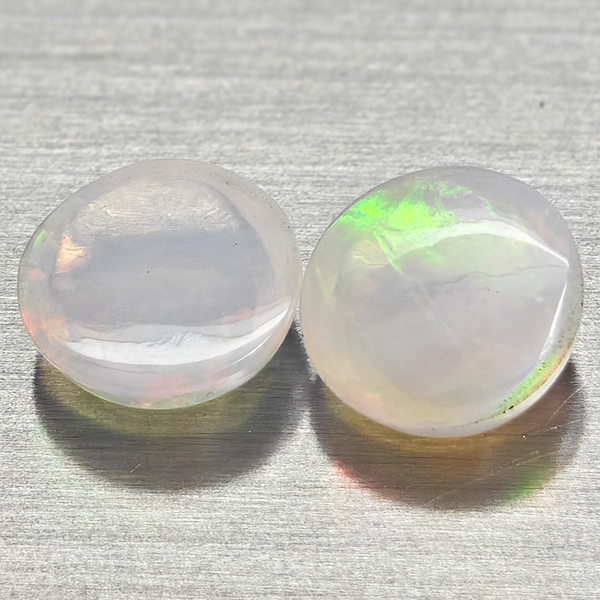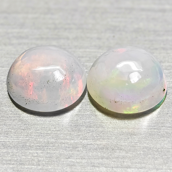 Natural Multi Color Opal 1.54 Ct. 2 Pcs Round Cabochon Shape 7 Mm Gemstones