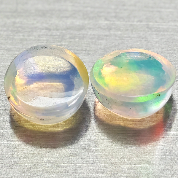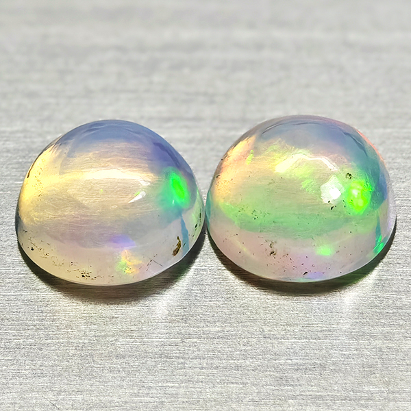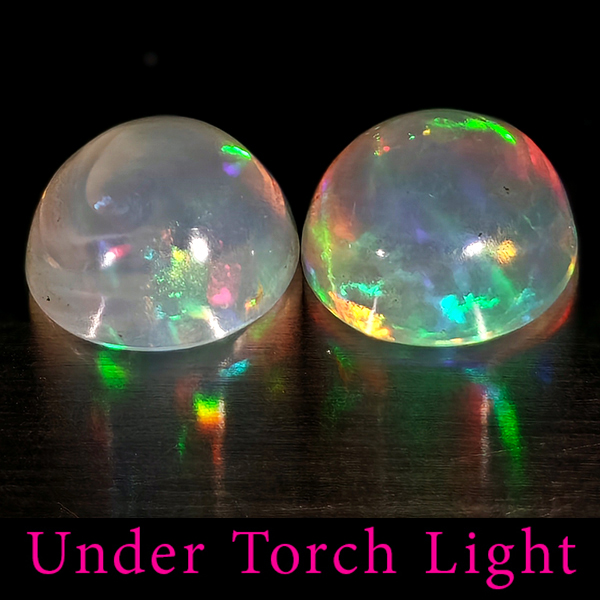 Natural Multi Color Opal 1.74 Ct. 2 Pcs Round Cabochon Shape 7 Mm Gemstones