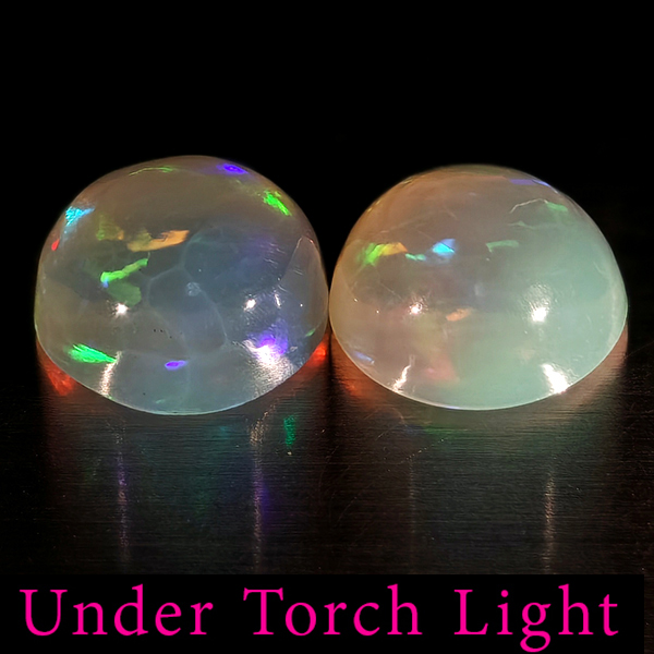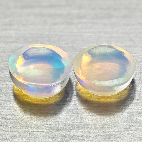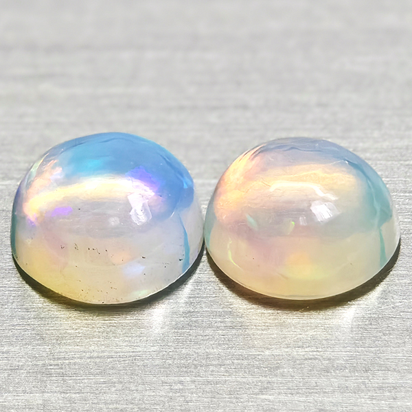 Natural Multi Color Opal 1.65 Ct. 2 Pcs Round Cabochon Shape 6.8 Mm Gemstones