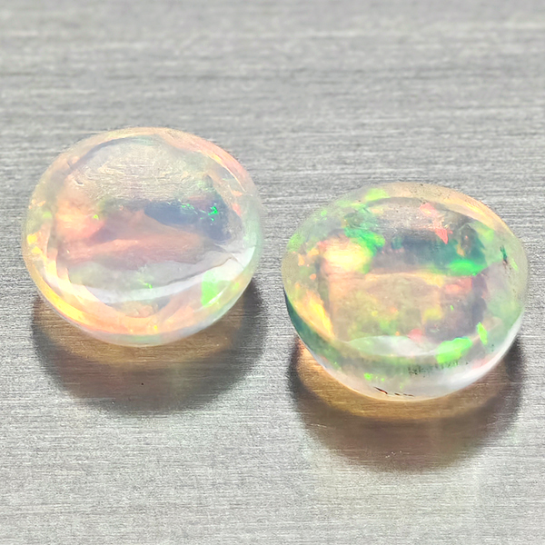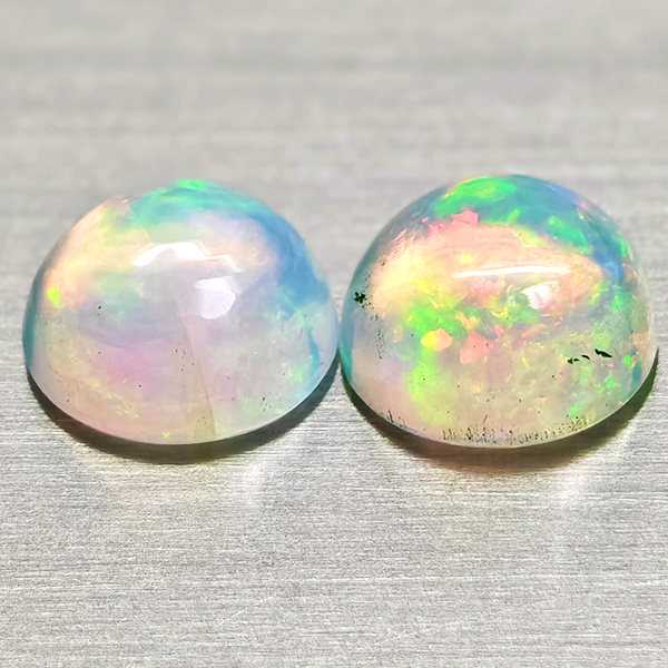 Natural Multi Color Opal 1.79 Ct. 2 Pcs Round Cabochon Shape 7 Mm Gemstones