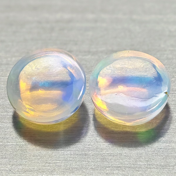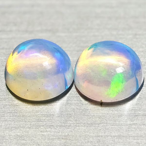 Natural Multi Color Opal 1.87 Ct. 2 Pcs Round Cabochon Shape 7.1 Mm Gemstones