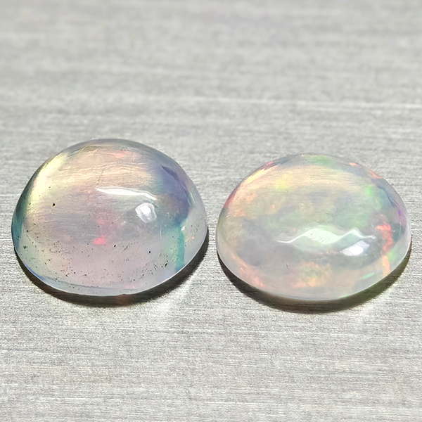 Natural Multi Color Opal 1.18 Ct. 2 Pcs Round Cabochon Shape 7 Mm Gemstones