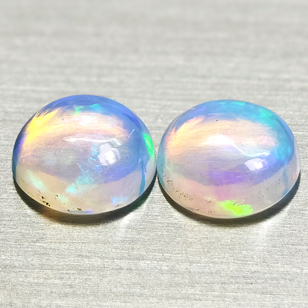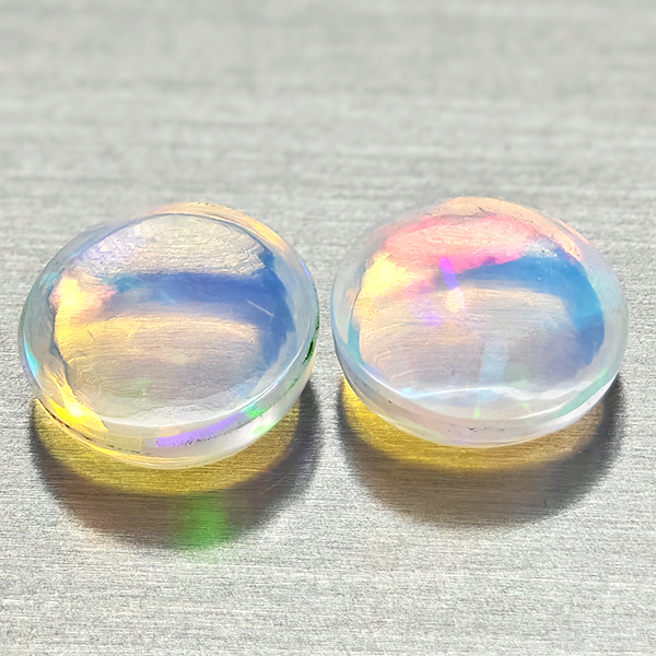 Natural Multi Color Opal 1.58 Ct. 2 Pcs Round Cabochon Shape 7.1 Mm Gemstones