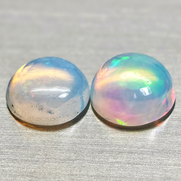 Natural Multi Color Opal 1.51 Ct. 2 Pcs Round Cabochon Shape 7 Mm Gemstones