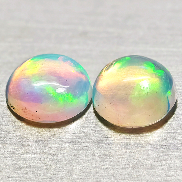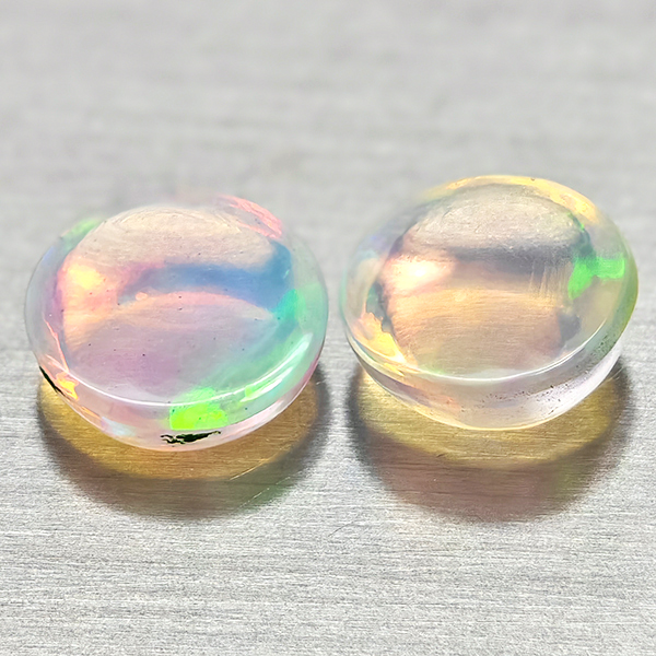 Natural Multi Color Opal 1.56 Ct. 2 Pcs Round Cabochon Shape 6.9 Mm Gemstones