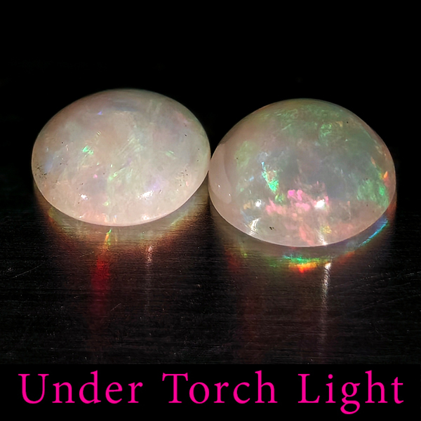 Natural Multi Color Opal 1.24 Ct. 2 Pcs Round Cabochon Shape 7.1 Mm Gemstones