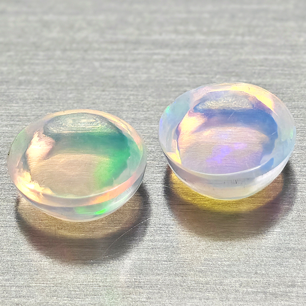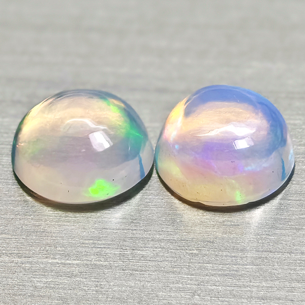 Natural Multi Color Opal 1.48 Ct. 2 Pcs Round Cabochon Shape 6.9 Mm Gemstones