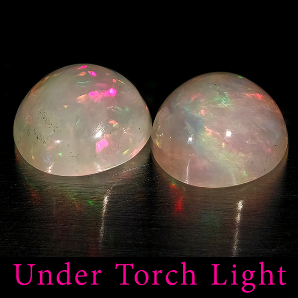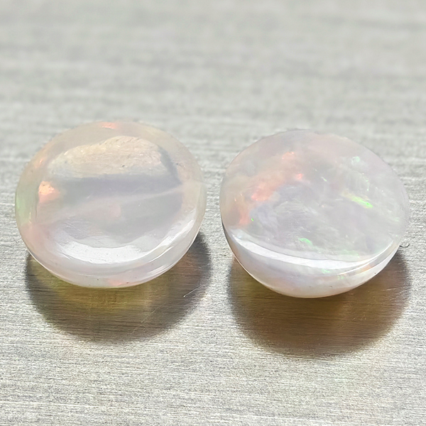 Natural Multi Color Opal 1.47 Ct. 2 Pcs Round Cabochon Shape 7 Mm Gemstones