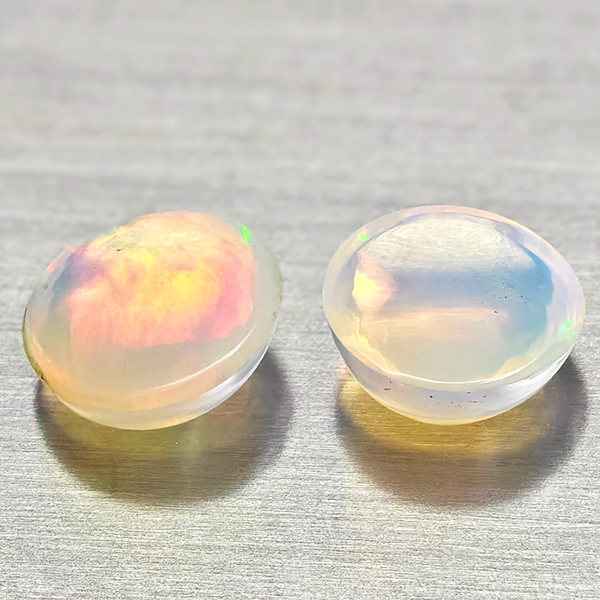 Natural Multi Color Opal 1.34 Ct. 2 Pcs Round Cabochon Shape 6.9 Mm Gemstones