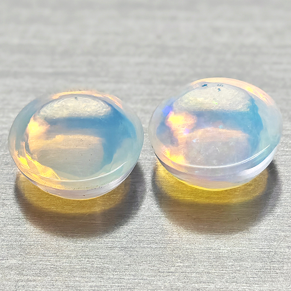 Natural Multi Color Opal 1.48 Ct. 2 Pcs Round Cabochon Shape 6.8 Mm Gemstones