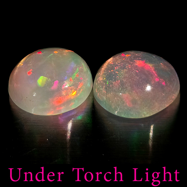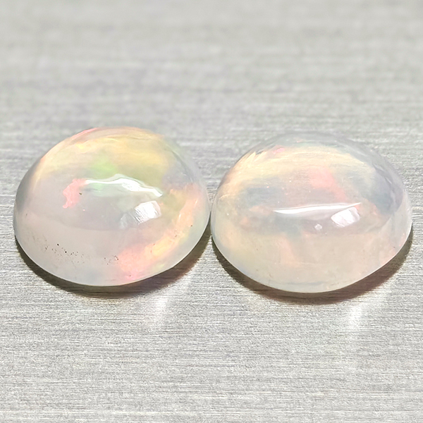 Natural Multi Color Opal 1.38 Ct. 2 Pcs Round Cabochon Shape 6.8 Mm Gemstones