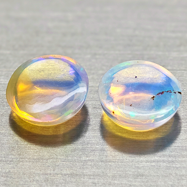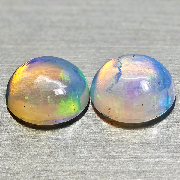 Natural Multi Color Opal 1.47 Ct. 2 Pcs Round Cabochon Shape 7 Mm Gemstones