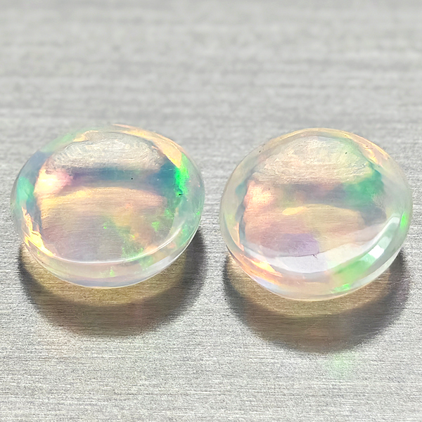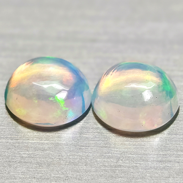 Natural Multi Color Opal 1.45 Ct. 2 Pcs Round Cabochon Shape 6.9 Mm Gemstones