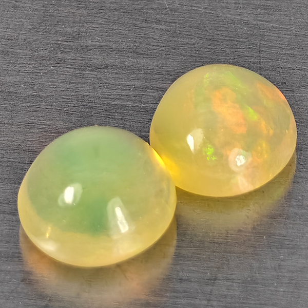 Natural Multi-Color Play Of Colour Opal 1.15 Ct. 2 Pcs Round Cabochon Shape 5.9 Mm Gemstone Ethiopia