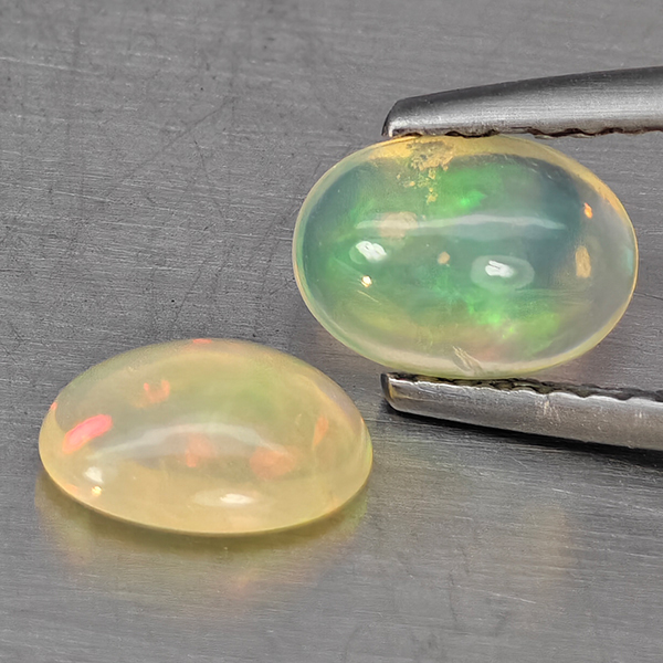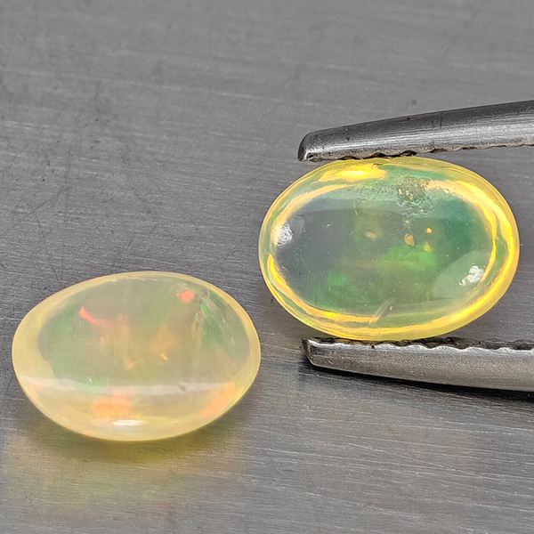 Natural Multi-Color Play Of Colour Opal 0.97 Ct. 2 Pcs Oval Cabochon Shape 7.2 x 5.3 Mm Gemstones