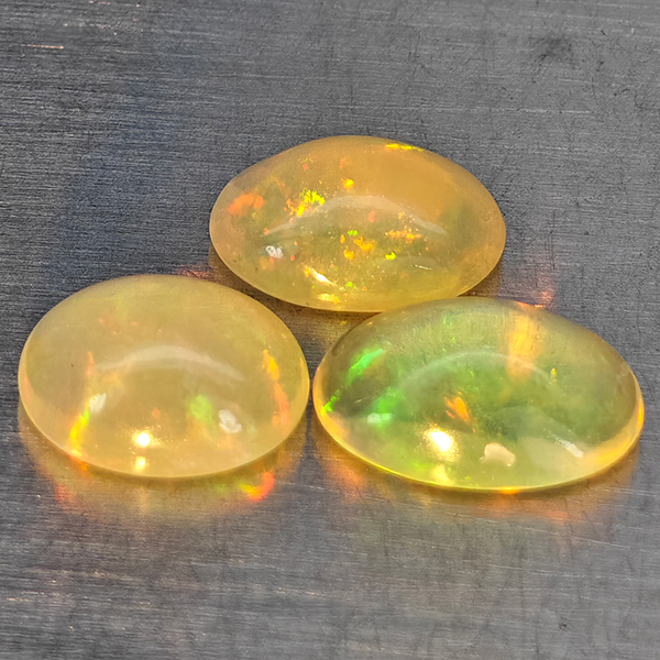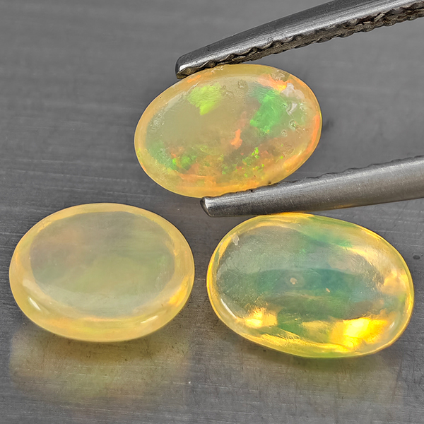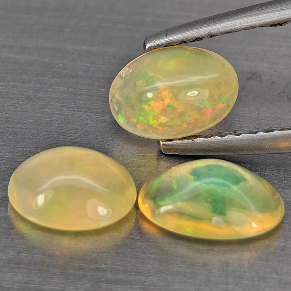 Natural Multi-Color Play Of Colour Opal 1.77 Ct. 3 Pcs Oval Cabochon Shape 7.1 x 5.1 Mm Gemstones