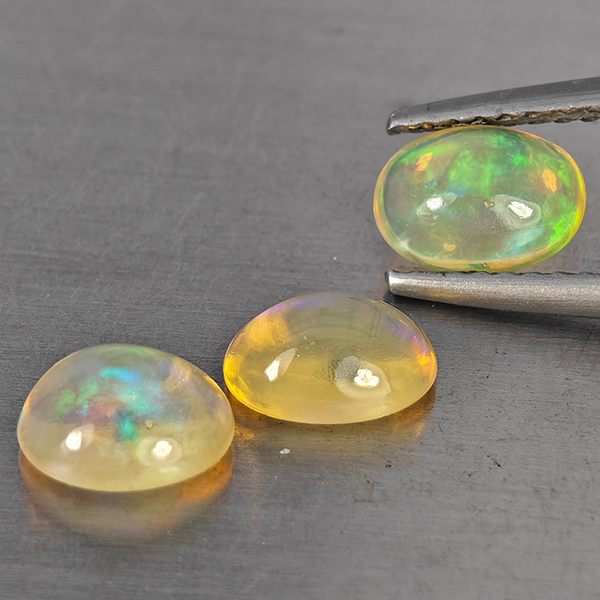 Natural Multi-Color Play Of Colour Opal 1.72 Ct. 3 Pcs Oval Cabochon Shape 6.9 x 5 Mm Gemstones