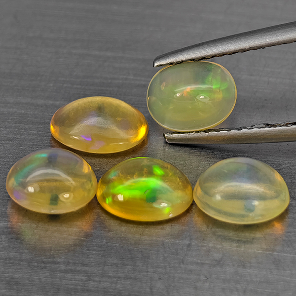 Natural Multi-Color Play Of Colour Opal 3.48 Ct. 5 Pcs Oval Cabochon Shape 7.8 x 6.1 Mm Gemstones