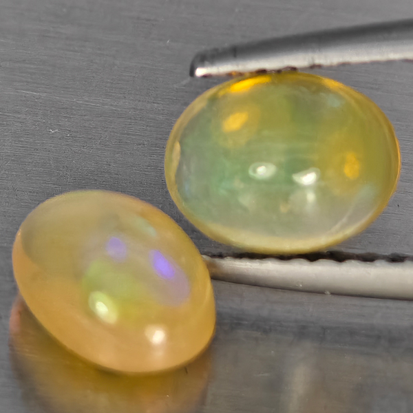 Natural Multi Color Play Of Colour Opal 1.60 Ct. 2 Pcs Oval Cabochon Shape Gemstones From Ethiopia