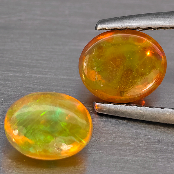 Natural Multi Color Play Of Colour Opal 1.12 Ct. 2 Pcs Oval Cabochon Shape Gemstones From Ethiopia