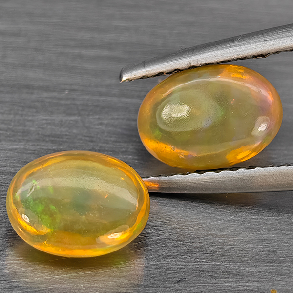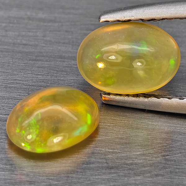 Natural Multi Color Play Of Colour Opal 0.88 Ct. 2 Pcs Oval Cabochon Shape Gemstones From Ethiopia