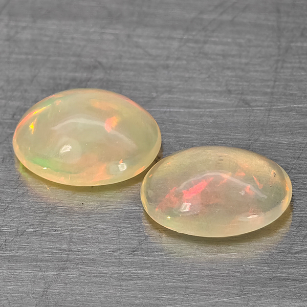Natural Multi Color Play Of Colour Opal 0.88 Ct. 2 Pcs Oval Cabochon Shape Gemstones From Ethiopia